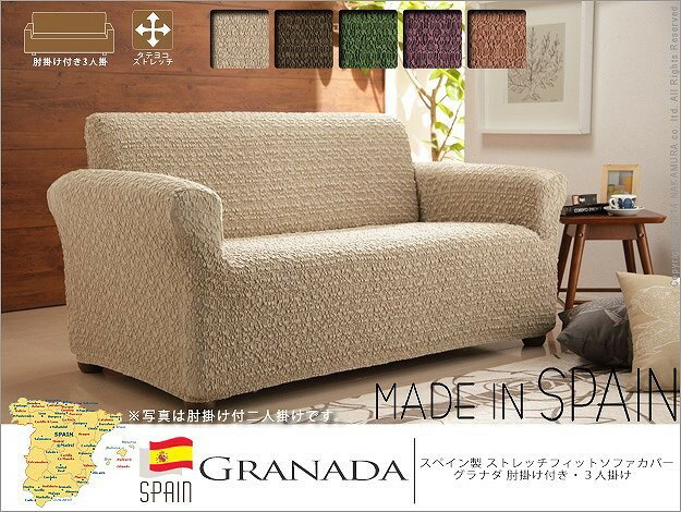 適合ソファ:幅125〜180cm、高さ90cmまで対応 材質:ポリエステル60%、綿37%、ポリウレタン3% (61001024)スペイン製 ストレッチフィットソファカバー グラナダ 肘掛け付き・3人掛 ソファカバー 3人掛け 肘付き【注意事項】こちらのページの商品は、メーカー直送の商品となります。