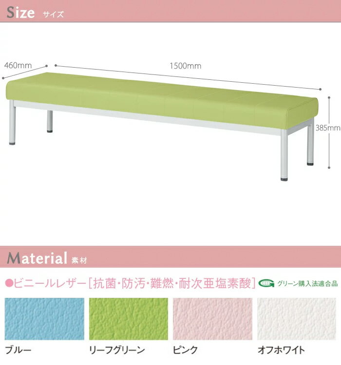 サイズ横幅(W)x奥行(D)X高さ(H) mm W1500×D460 SH385mm 共通仕様 ●座/木枠・合板・ウレタンフォーム●脚部/スチールパイプ(φ38.1)粉体塗装、アジャスター付 組立について 組立式 納期について おおよその納期は、約10〜15日後の発送予定となります。